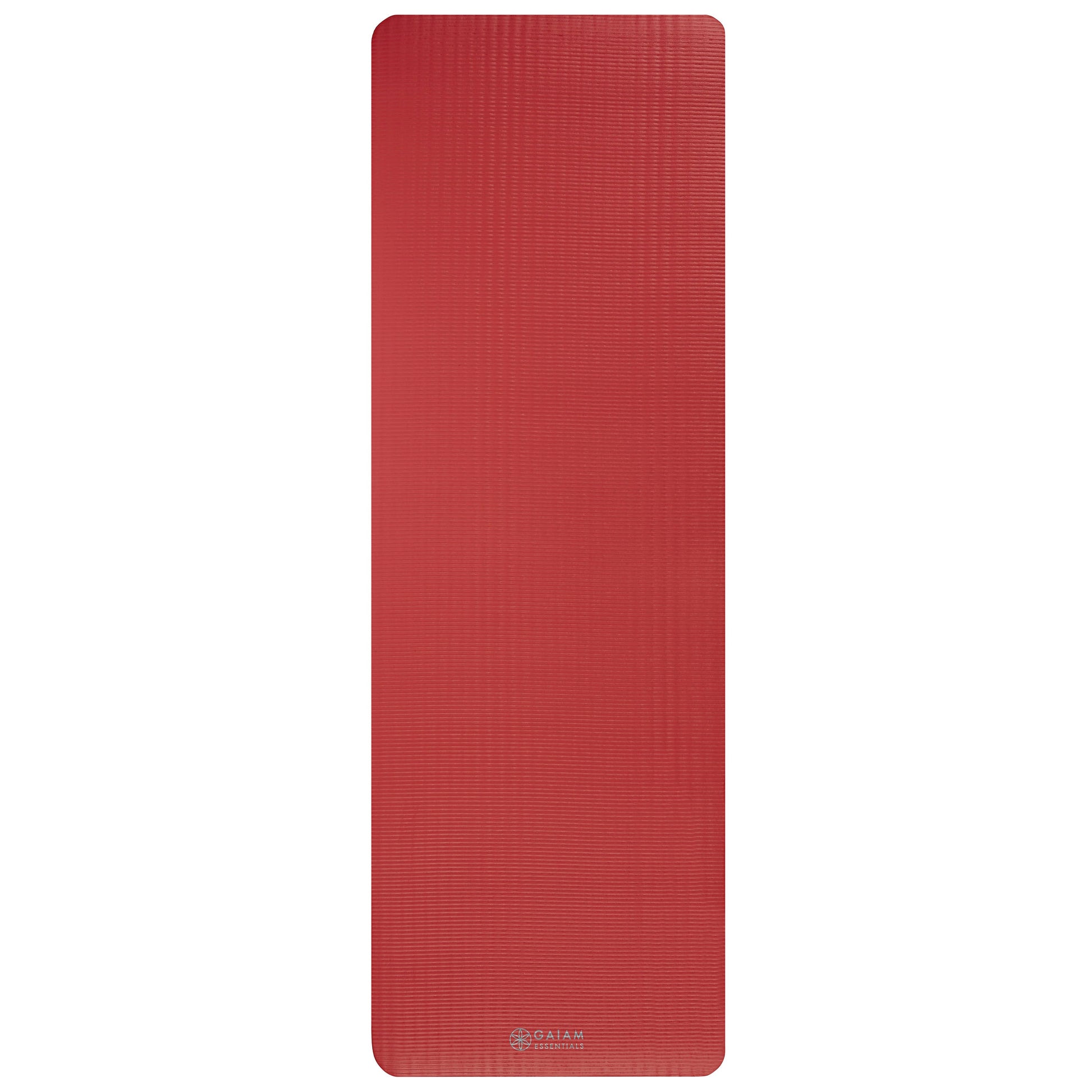 Get the ultimate comfort, support and style during any exercise with these 10mm thick Gaiam Essentials Fitness Mat. With non-slip ridges for superior traction, you will stay put during ab work, toning, stretching, and more while using our fitness mat. This mat also comes with a nylon carry strap for easy portability.